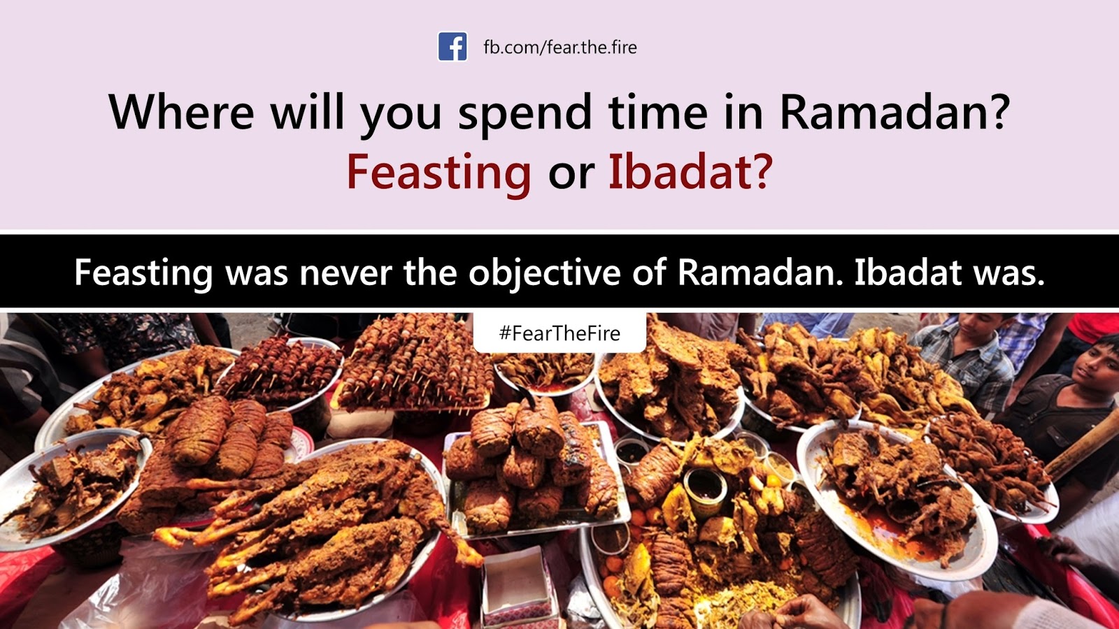 For some people, the entire month of Ramadan revolves around food. They spend the ENTIRE day planning, cooking, shopping and thinking about food, instead of concentrating on Salaah, Qur’an and other acts of worship. All they can think of is FOOD. So much so that they turn the month of ‘fasting’ into the month of ‘feasting’.