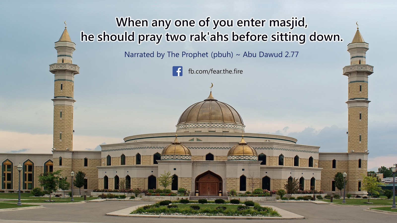 The Messenger said, โIf anyone of you enters a masjid, he should pray two rakat before sitting.โ ~ Dawud 2/77