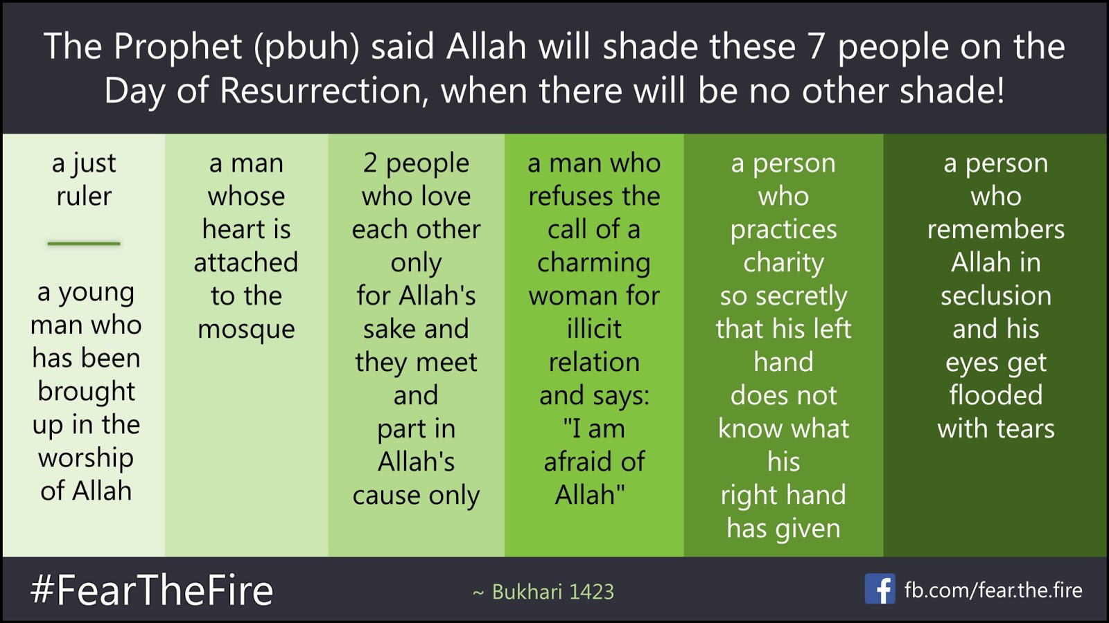Let us examine now the characteristics and virtues of these seven categories of people who will be worthy of such an exalted position on the Day of Gathering. Source.